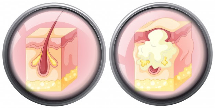 Essa situação é causada por uma inflamação no folículo pilossebáceo da pele, ou seja, no local em que há um pêlo e uma glândula sebácea, que é responsável pela produção de sebo na pele.